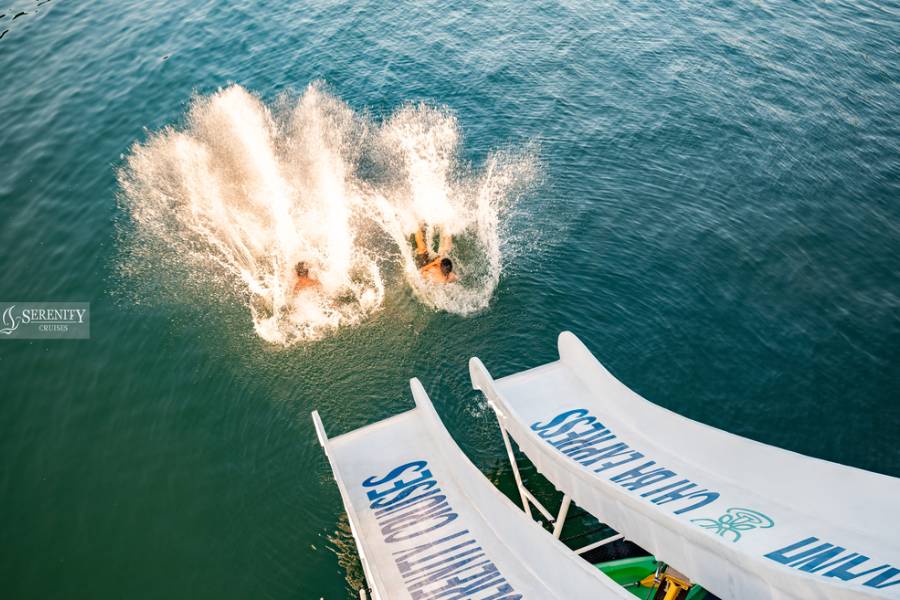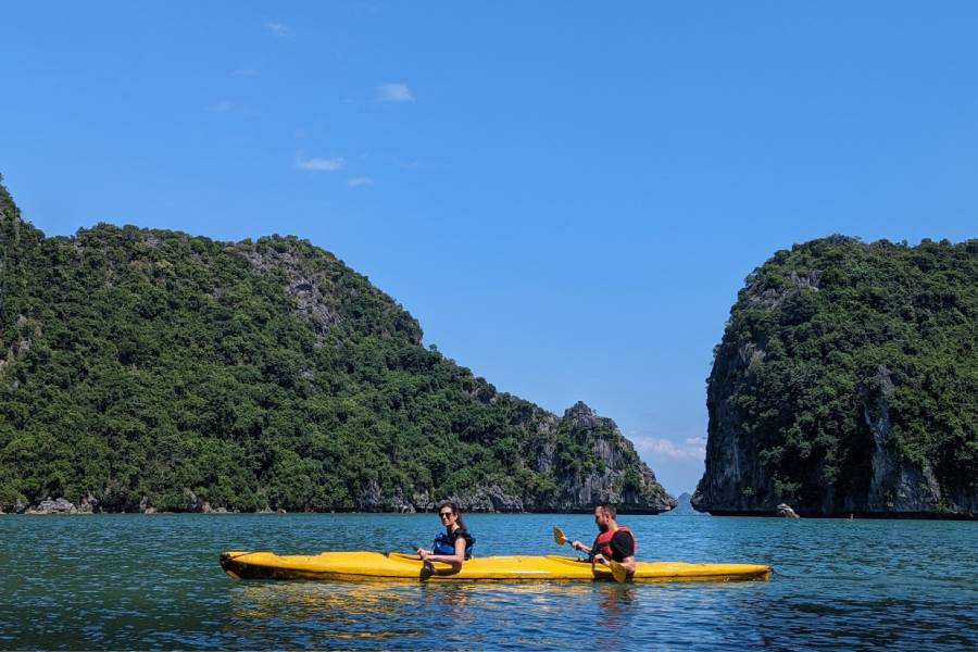 - Unique experiences with exciting activities: Kayaking, swimming, trekking, visiting caves and enjoying a sunset party in the middle of the bay.