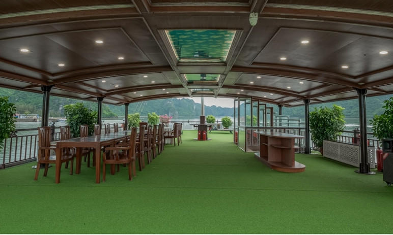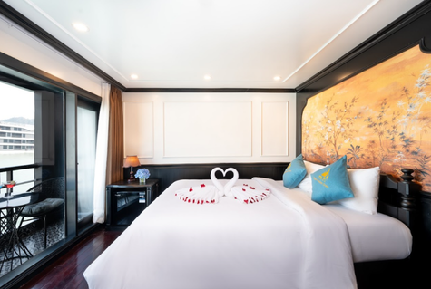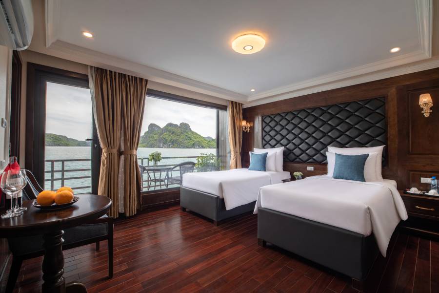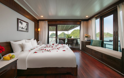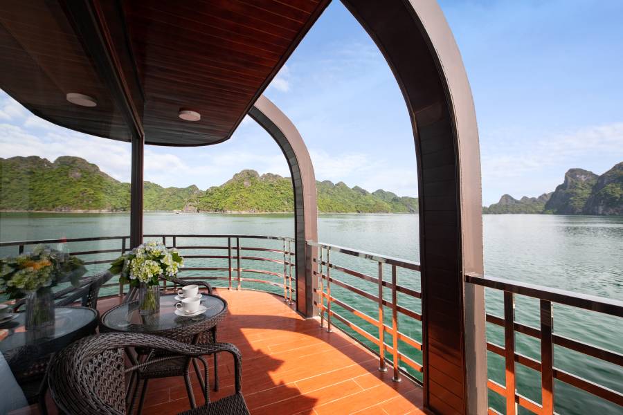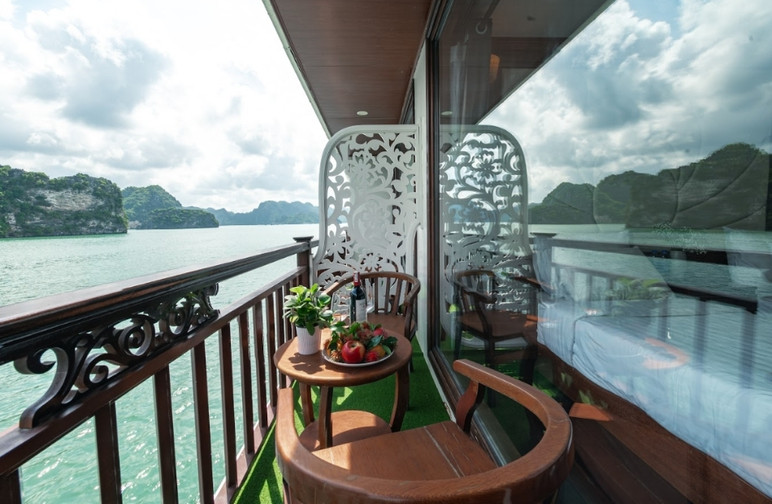 As one of the most elegant steel-hulled luxury cruises in Halong Bay, Au Co Cruise offers a smooth and stable sailing experience through Halong Bay and Lan Ha Bay. The cruise features 32 spacious cabins with private balconies, allowing guests to immerse themselves in the stunning seascape.
