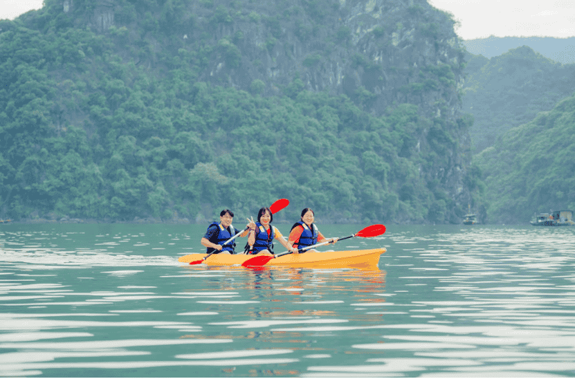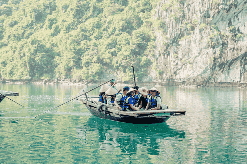 15:00 | Mingling yourself in the stunning views of the Bay and its dramatic limestone islets as we sail through the calm emerald waters heading to Dark & Bright Cave (Hang Sang & Toi). Customers will participate in outdoor activities and choose options between Kayaking Or sitting on a bamboo boat for about 1 hour.