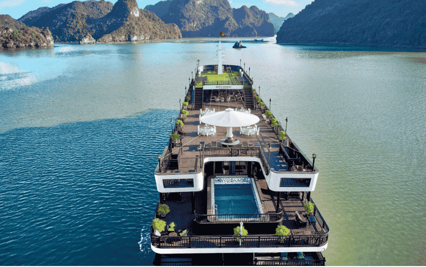 Rita Cruise is newly 5-star++ cruise. It is the first cruise with available swimming pool and private soundproof Karaoke lounge and TV Satellite. All cabins have private balcony with ocean views. The itineraries are exclusive and different to all cruises with unique and original Lan Ha Bay where is not too crowed.