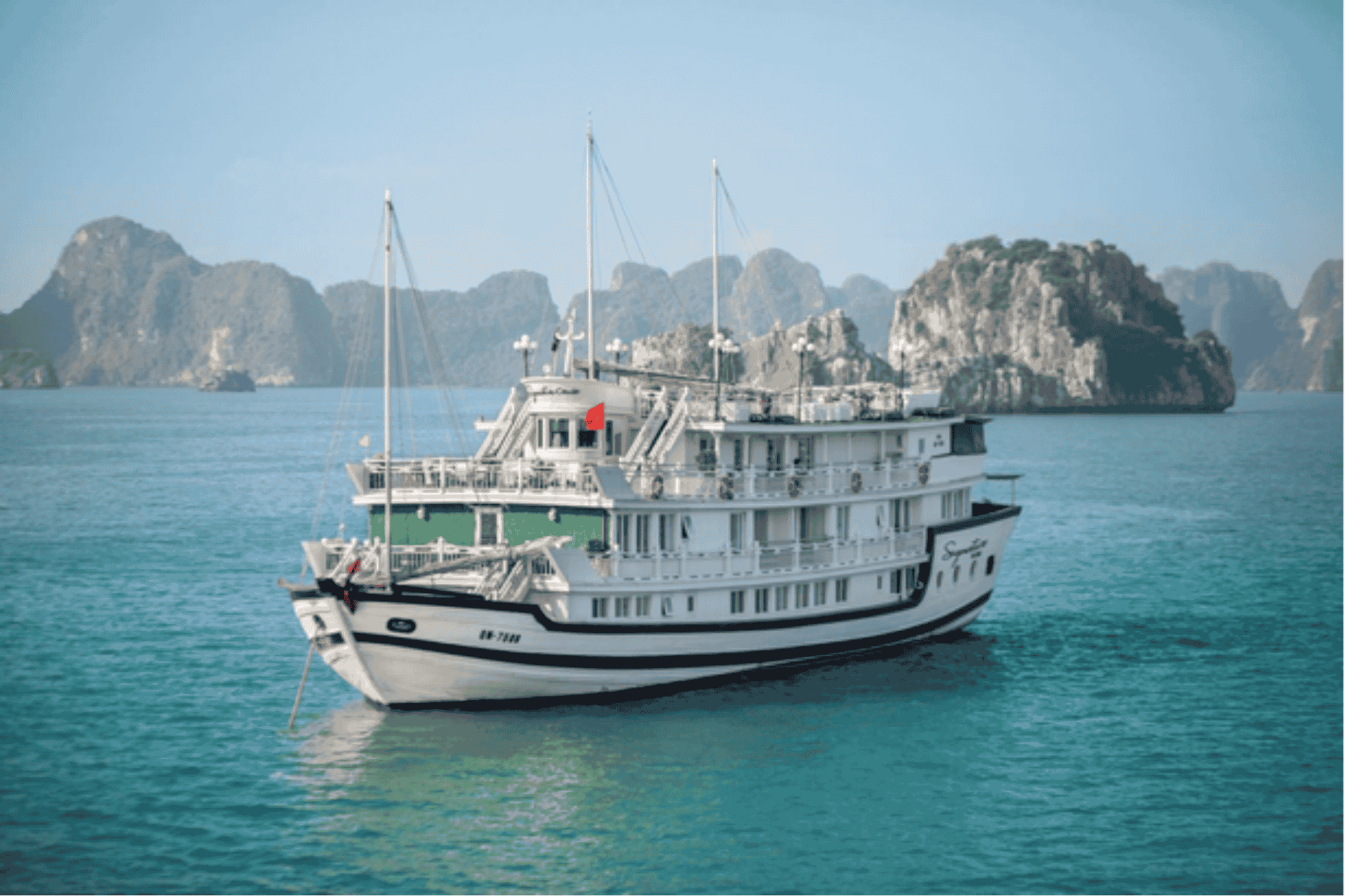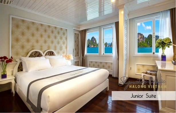 Signature Royal Cruise offers an opulent 5-star experience in Bai Tu Long Bay, featuring extremely large cabins with private Jacuzzis, gourmet dining, and a comprehensive range of activities. Signature Royal Cruise redefines luxury in Bai Tu Long Bay by masterfully merging opulent indulgence with a profound commitment to environmental stewardship.